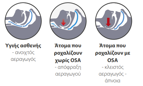 Όταν κοιμόμαστε, οι μύες και οι μαλακοί ιστοί στον ανώτερο αεραγωγό μας χαλαρώνουν και διαστέλλονται, στενεύοντας μερικές φορές τον αεραγωγό που μεταφέρει αέρα προς και από τους πνεύμονές μας. Όταν ο αεραγωγός στενεύει, μπορεί να προκαλέσει τη δόνηση του αέρα που διέρχεται από αυτόν, η οποία είναι αυτή που προκαλεί τον ήχο του ροχαλητού. Εάν έχετε OSA, οι μύες σας χαλαρώνουν τόσο πολύ που μπορούν να φράξουν πλήρως τον αεραγωγό και να διαταράξουν το φυσιολογικό μοτίβο της αναπνοής