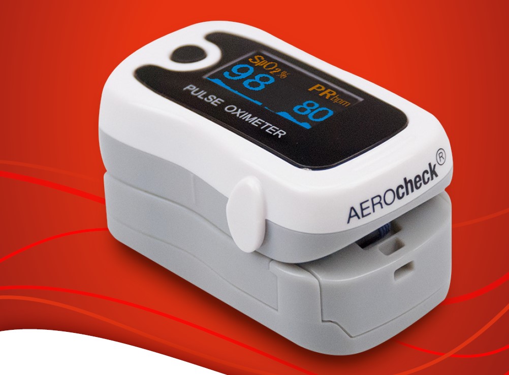 To AEROcheck είναι ένα γερμανικό οξύμετρο από την εταιρεία HUM, το οποίο μετράει με ακρίβεια τον κορεσμό του οξυγόνου και τους παλμούς της καρδιάς. Εμφανίζει επίσης καμπύλη πληθυσμογραφίας και το ποσοστό της μπαταρίας